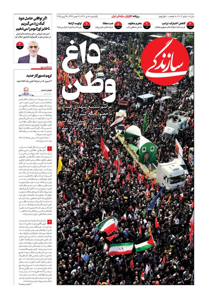 شماره ۲۰۰۴ روزنامه سازندگی یکشنبه ۱۴۰۴/۰۴/۰۸