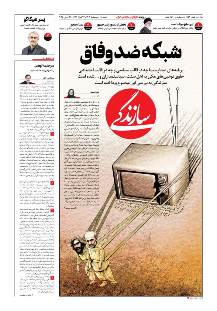 شماره ۱۹۵۳ روزنامه سازندگی یکشنبه ۱۴۰۴/۰۲/۰۷