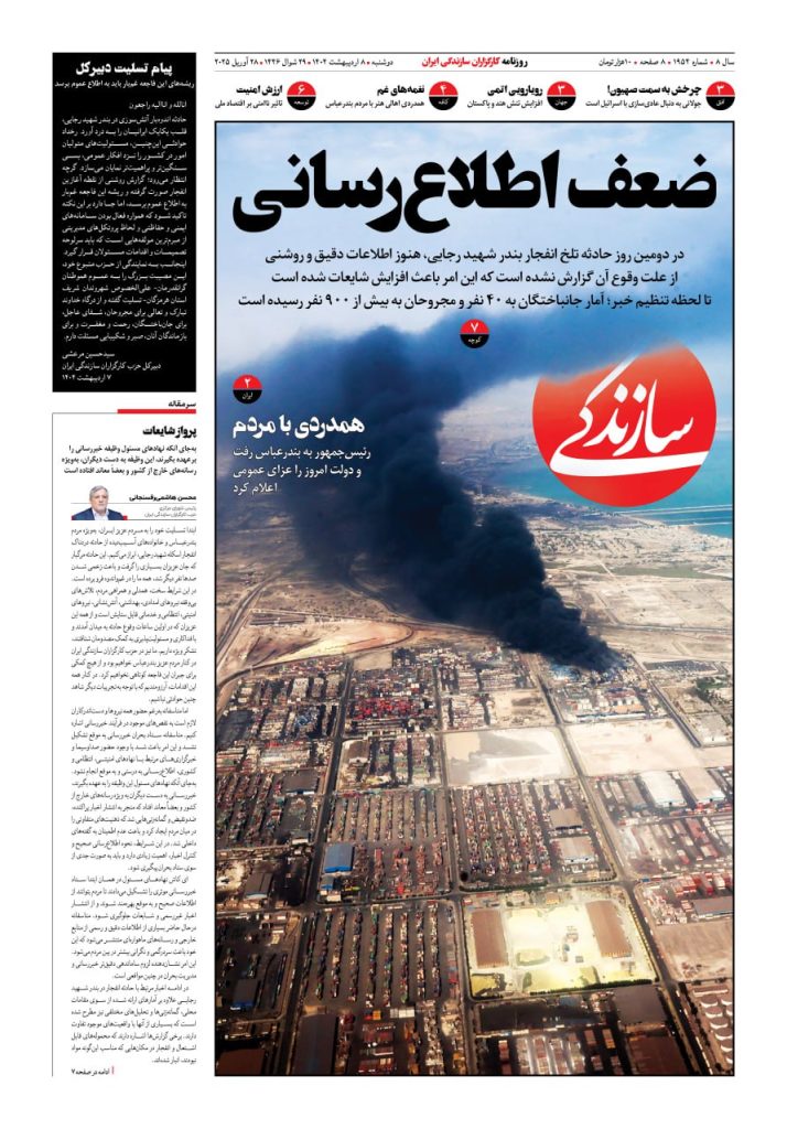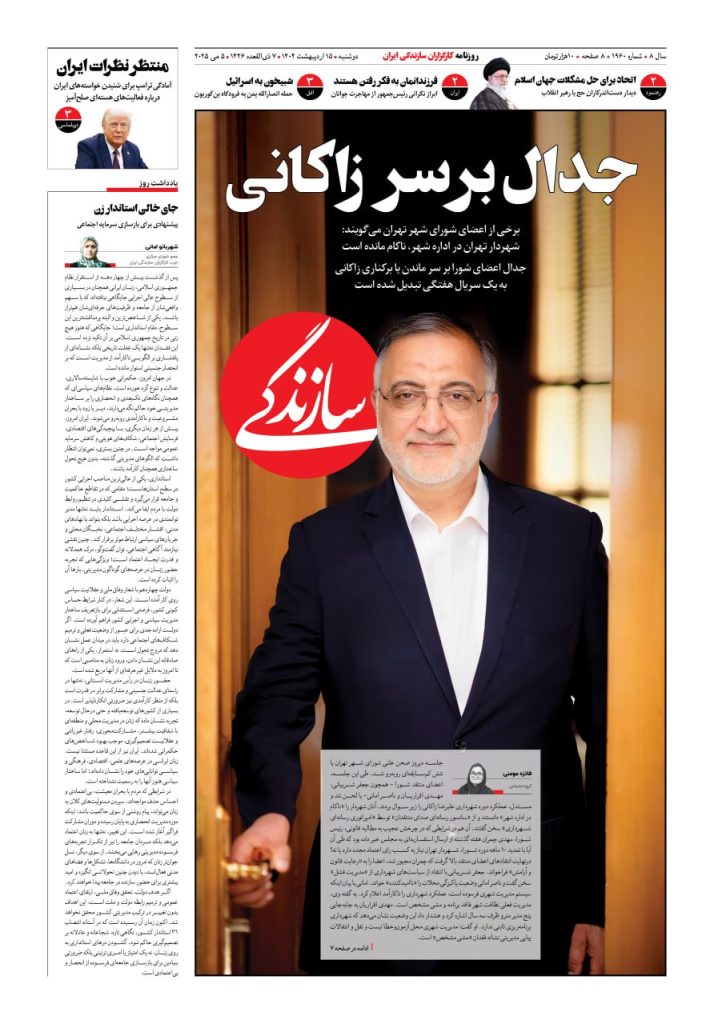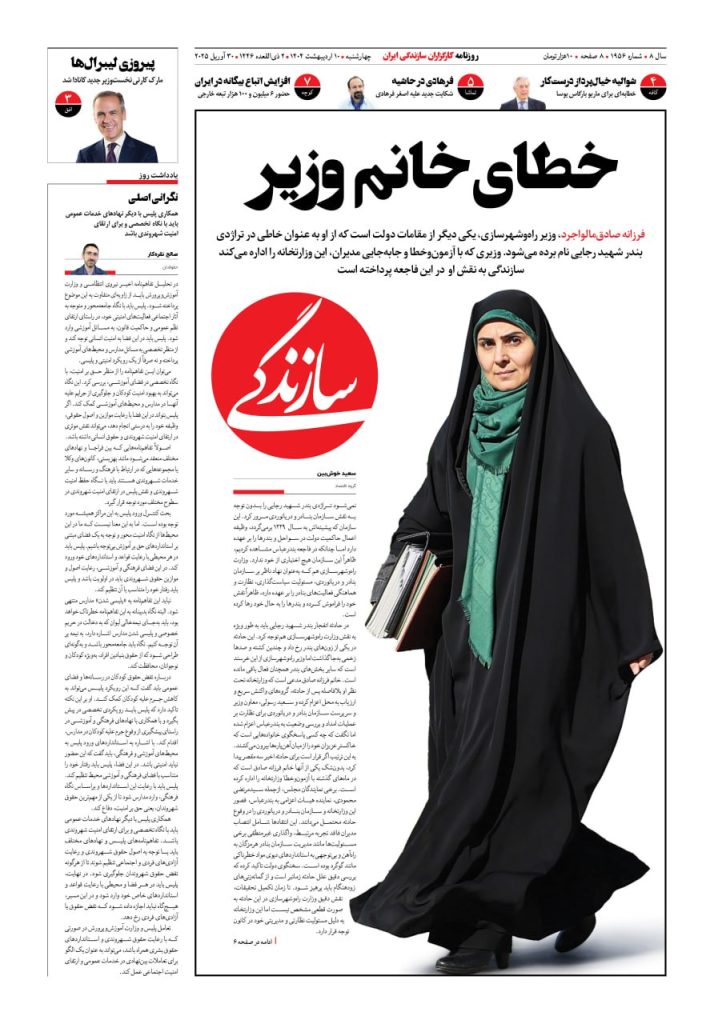 شماره ۱۹۵۷ روزنامه سازندگی پنجشنبه ۱۴۰۴/۰۲/۱۱