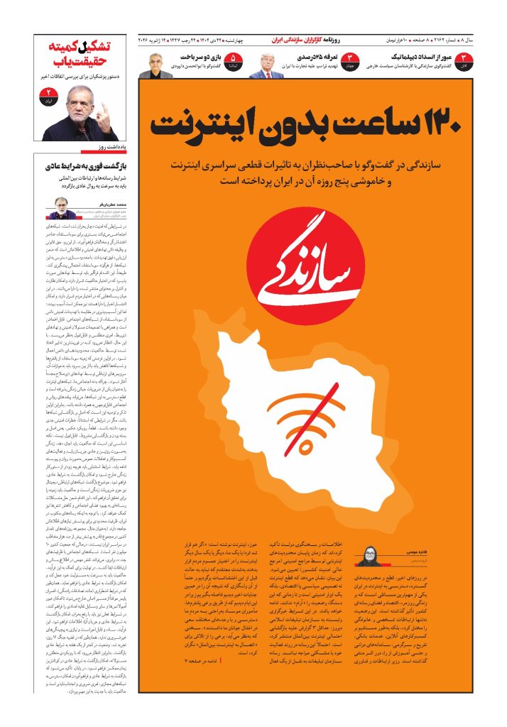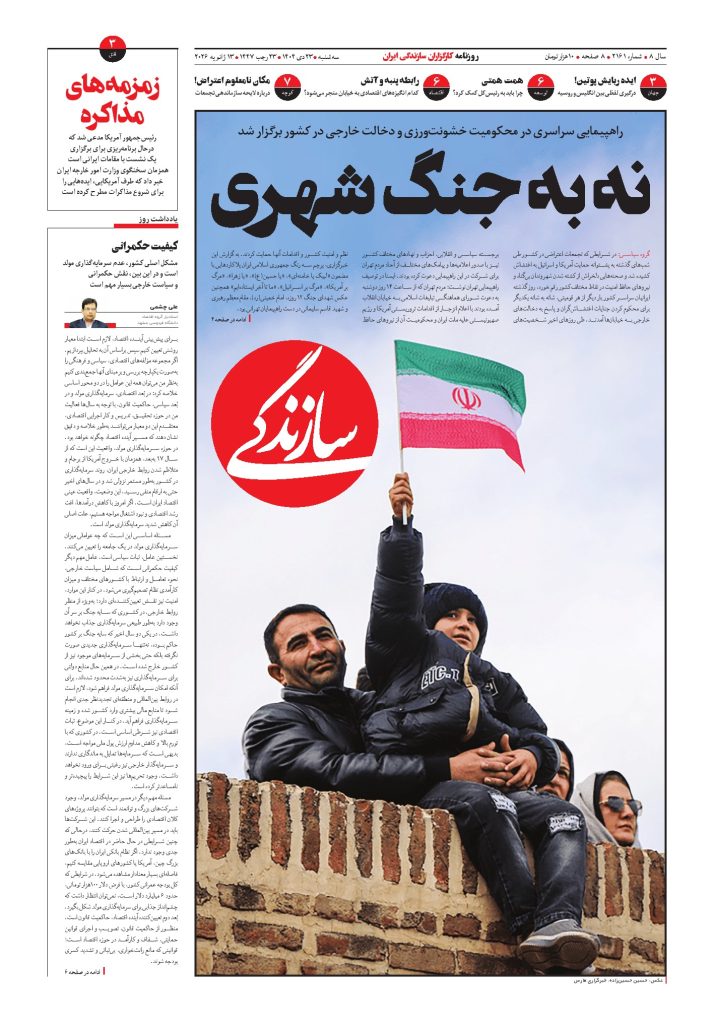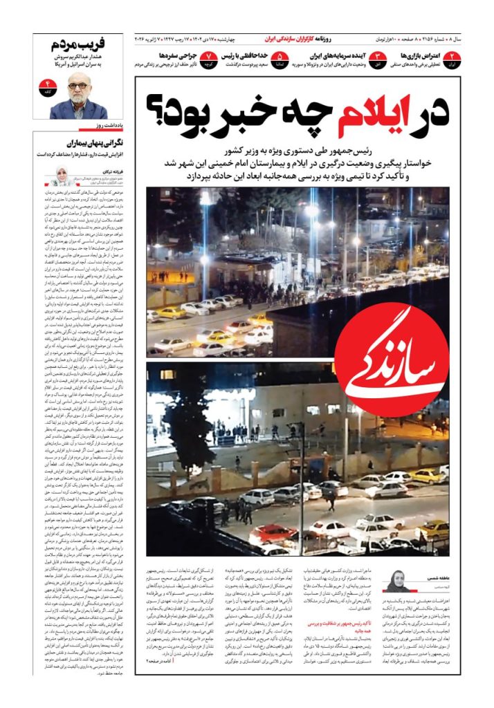 شماره ۲۱۶۳ روزنامه سازندگی پنجشنبه ۱۴۰۴/۱۰/۲۵