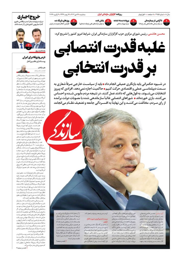 شماره ۲۱۵۵ روزنامه سازندگی سهشنبه ۱۴۰۴/۱۰/۱۶