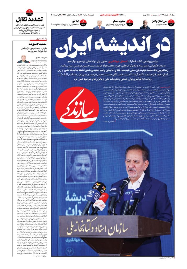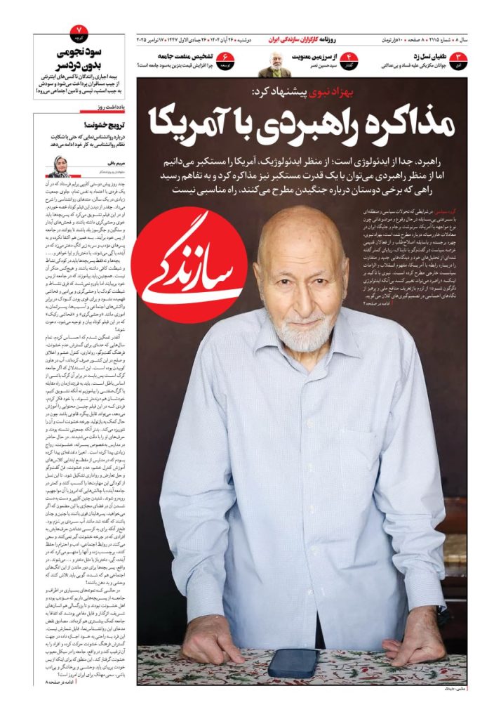 شماره ۲۱۱۷ روزنامه سازندگی چهارشنبه ۱۴۰۴/۰۸/۲۸