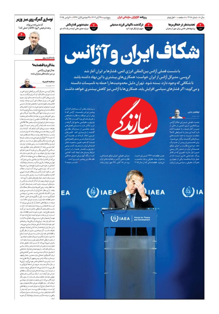 شماره ۲۱۱۸ روزنامه سازندگی پنجشنبه ۱۴۰۴/۰۸/۲۹