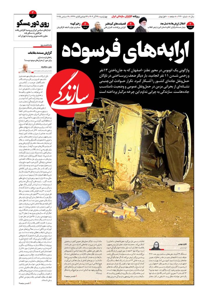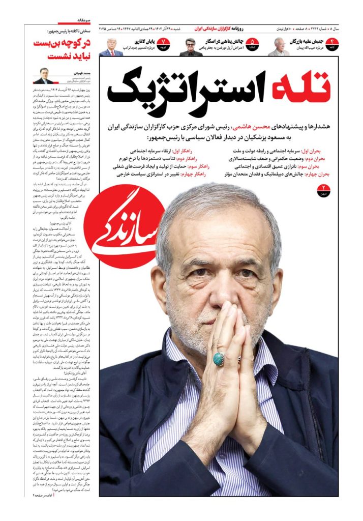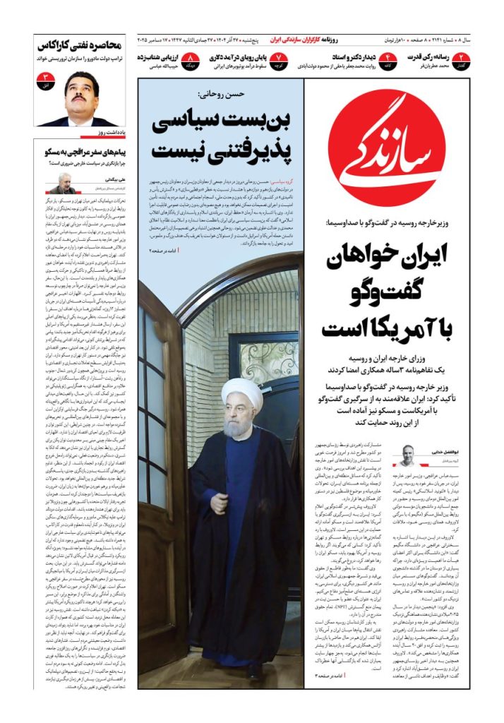 شماره ۲۱۴۱ روزنامه سازندگی پنجشنبه ۱۴۰۴/۰۹/۲۷