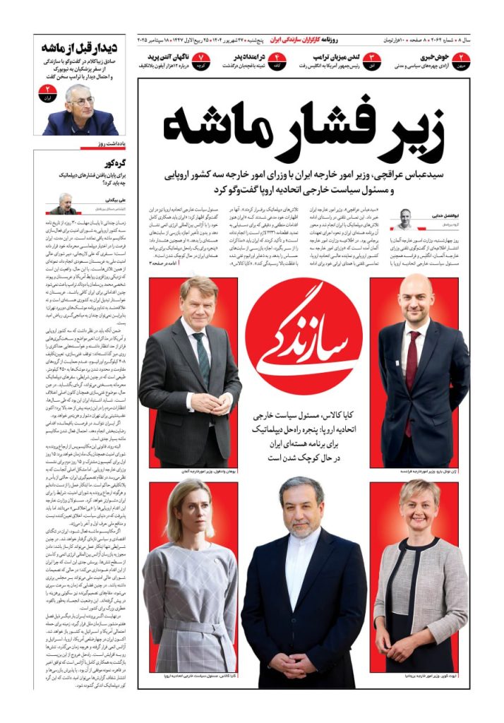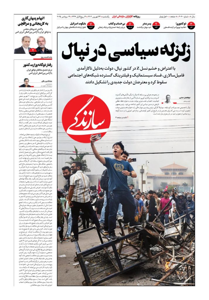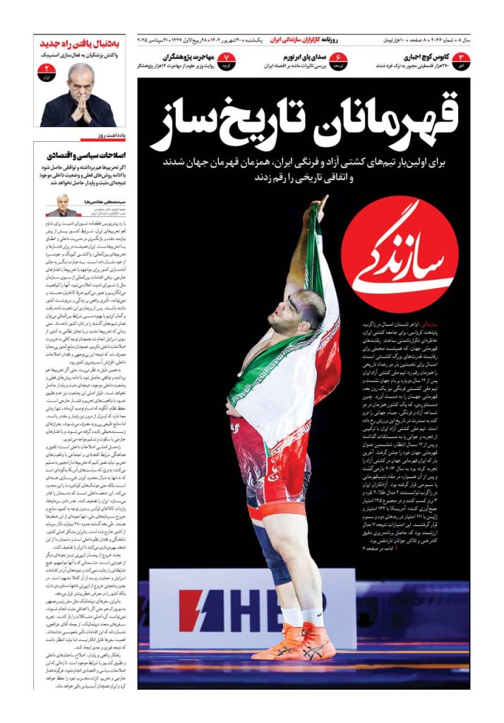 شماره ۲۰۶۲ روزنامه سازندگی سهشنبه ۱۴۰۴/۰۶/۲۵