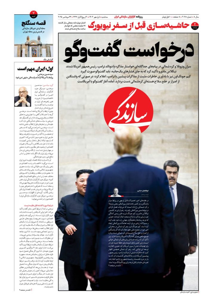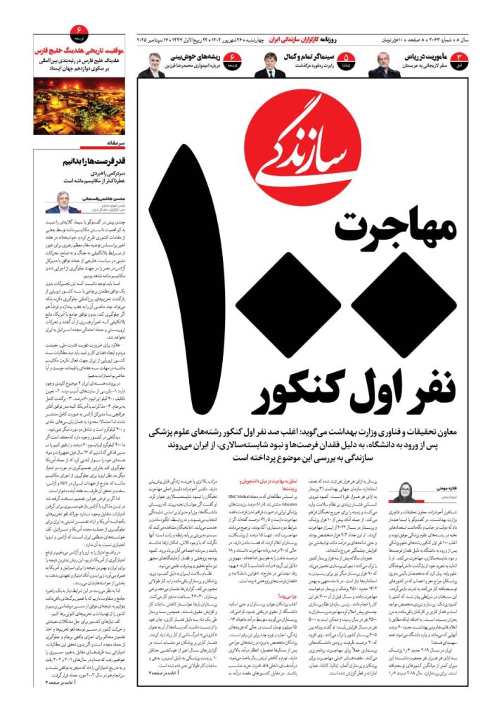 شماره ۲۰۶۱ روزنامه سازندگی دوشنبه ۱۴۰۴/۰۶/۲۴