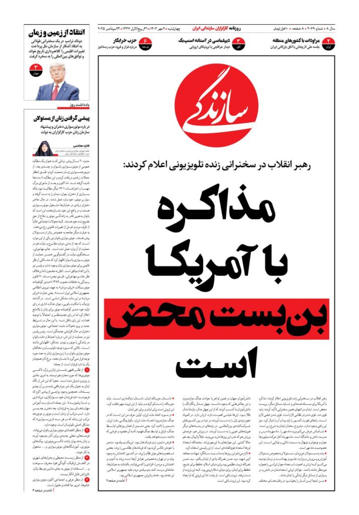 شماره ۲۰۶۹ روزنامه سازندگی چهارشنبه ۱۴۰۴/۰۷/۰۲